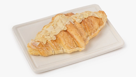 Нежный круассан с миндальным кремом и хрустящими лепестками приготовлен вручную. Слоёное тесто на сливочном масле сочетается с мягкой начинкой из миндальной муки, сливочного масла и сахара. Сверху круассан посыпан миндальными лепестками и сахарной пудрой. Удобный формат для завтрака или сладкого перекуса — можно взять с собой или подать к кофе. Продукт доступен с доставкой и в магазинах с зоной кафе.