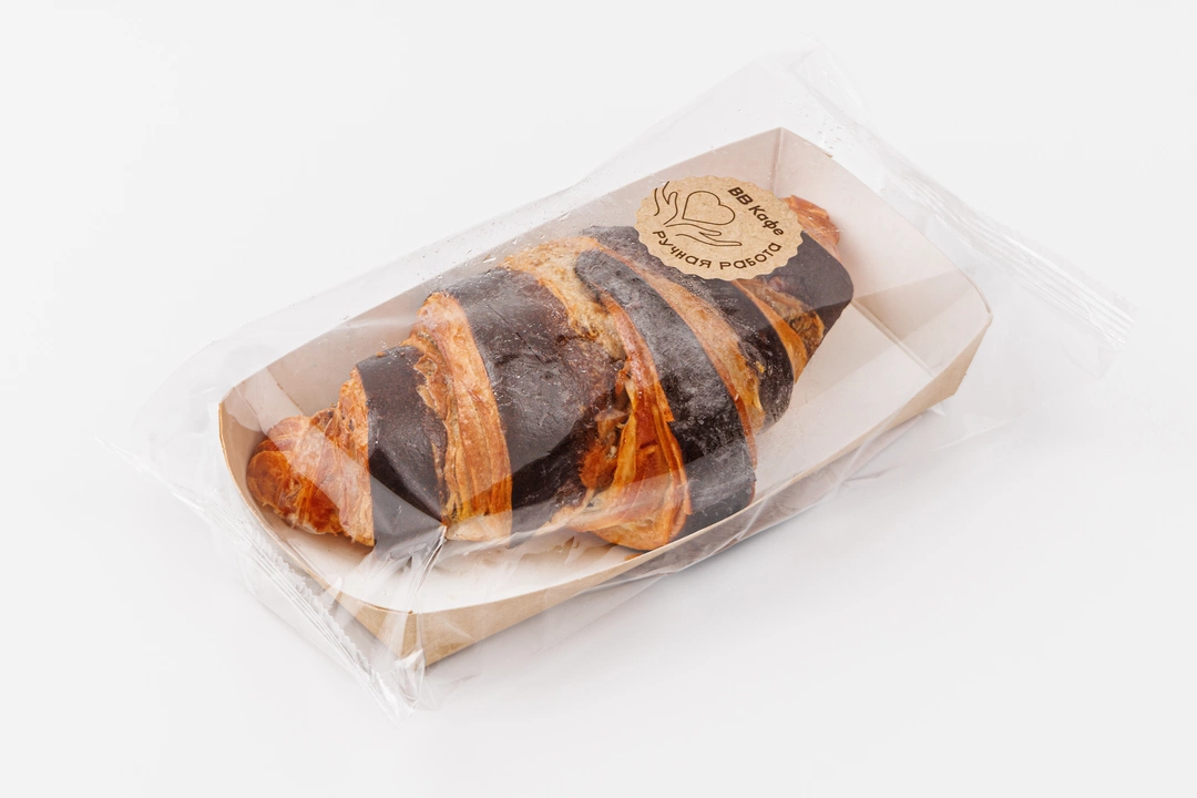 Круассан с ароматной начинкой на основе какао и фундука. Вкус мягкий, насыщенный, с орехово-шоколадной глубиной и деликатной сладостью. Начинка равномерно распределена и приятно дополняет воздушную мякоть круассана. Тесто чуть хрустящее снаружи и нежное внутри. Отличный вариант для десерта или дополнения к чашке кофе.