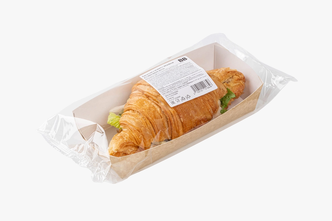 Слоистый, чуть хрустящий круассан дополнен начинкой с мягкими ломтиками индейки су-вид и нежным сливочным песто. Вкус получается ярким, но сбалансированным: свежий базилик и ореховые ноты соуса мягко сочетаются с моцареллой, а огурец и листья романо добавляют сочность и свежесть. Такой сэндвич подходит для быстрого завтрака, плотного перекуса или обеда, когда хочется чего-то насыщенного, но не тяжёлого.
