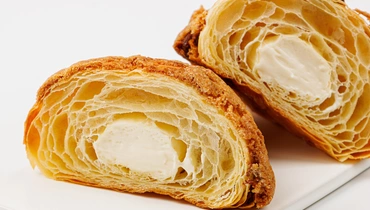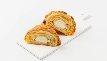 Слоёный круассан с «шапочкой», напоминающей печенье с шоколадными вкраплениями. Начинка — сливочный крем со вкусом пломбира. Контраст текстур делает выпечку особенно выразительной: слои теста, чуть хрустящий верх и шелковистый крем. Подходит к кофе или чаю, для сладкого завтрака или уютного перекуса.