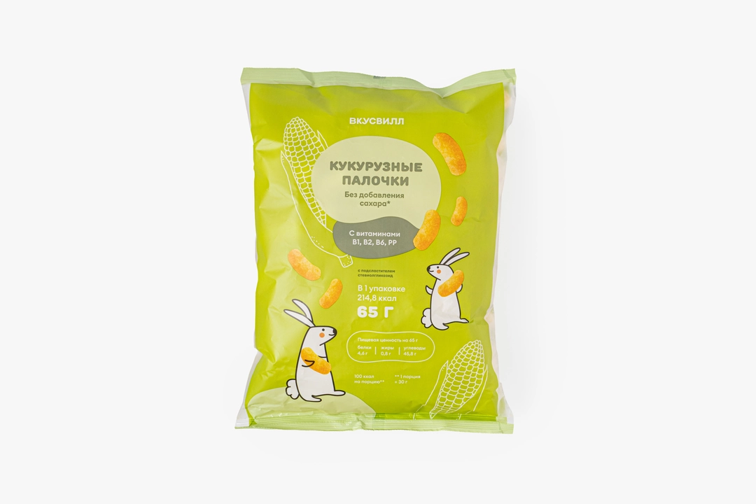 Вкусное может быть полезным и вот почему: — палочки изготавливаются всего из двух ингредиентов: кукурузной крупы высшего сорта и экстракта стевии. Не содержат сахара! — Витаминный комплекс группы В насыщает организм полезными микроэлементами, а кукурузная клетчатка помогает поддерживать здоровье ЖКТ. — Отличный снек для лёгкого перекуса, который можно взять с собой. Гликемический индекс - 65, гликемическая нагрузка - 10.1.