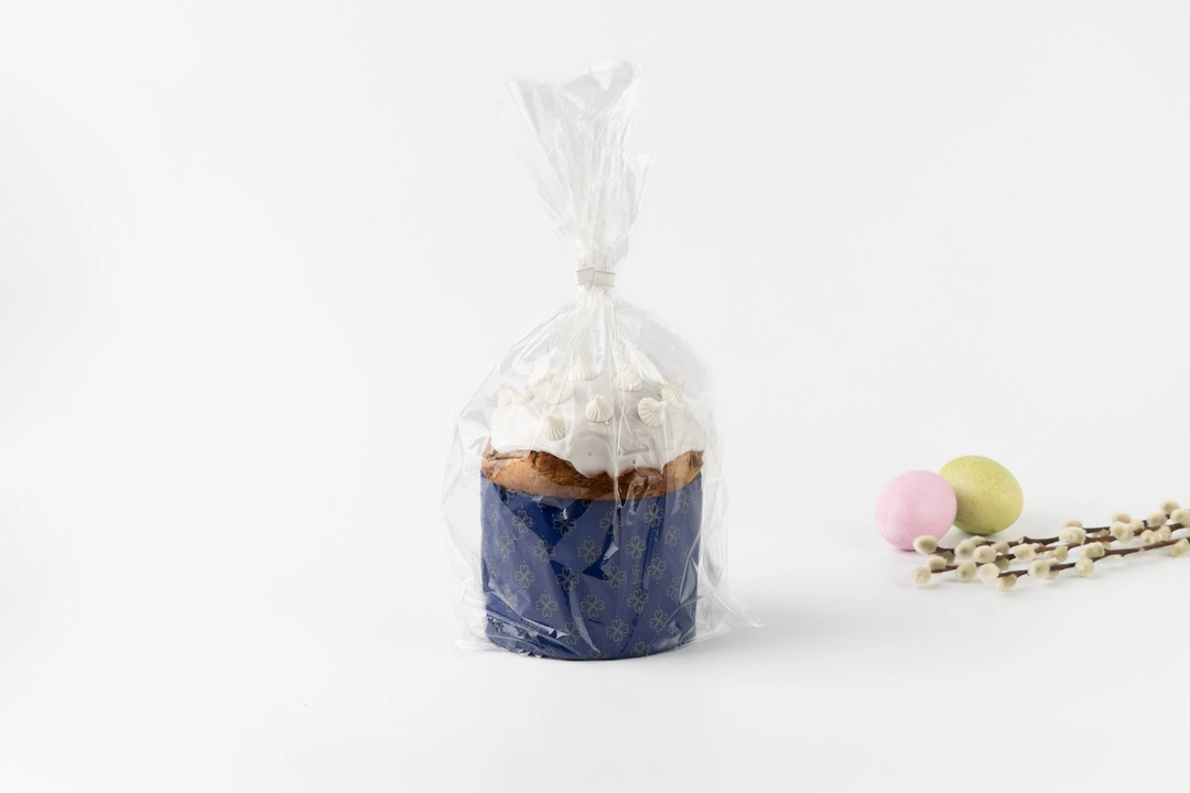Наш кулич приготовлен из дрожжевого теста на топлёном масле. Бережно добавили отборный изюм. Для декора использовали мини-безе. В составе только натуральные ингредиенты, без хлебопекарных улучшителей и заменителей молочных жиров.