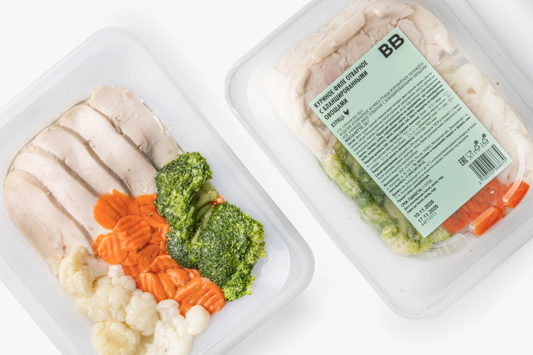 Отварная курочка с морковью, брокколи и цветной капустой — сложно представить более полезное и сбалансированное блюдо. В этой порции мы смиксовали нежное мясо с овощами, не добавляя ничего лишнего — только немного подсолнечного масла и соли. Отварили куриное филе до мягкости, нарезали его на аккуратные удобные ломтики. И бережно бланшировали овощи, чтобы сохранить их пользу, цвет, а также чуть хрустящую текстуру. Куриную грудку с овощами можно подавать как самостоятельное блюдо, а если дополнить любимым соусом, получится ещё вкуснее. Приятно, что такой обед не оставляет ощущение тяжести — только лёгкость, польза и никакого чувства вины за большую порцию.