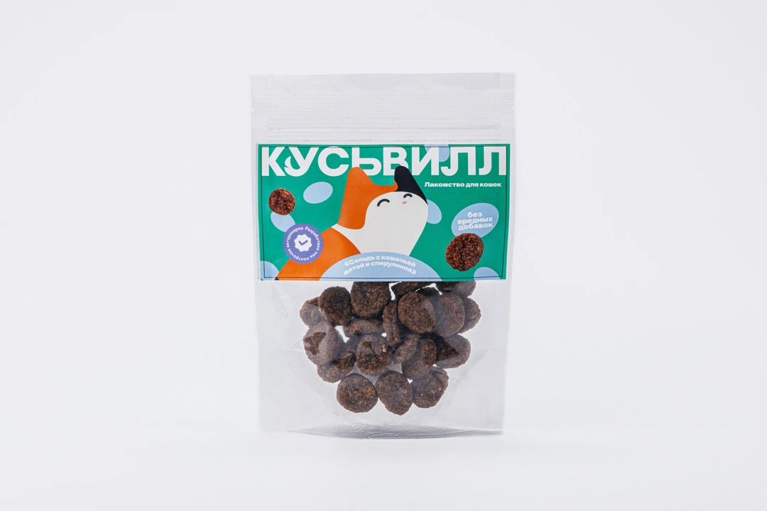 Рецепт разработан при участии ветеринаров: только натуральные ингредиенты, никаких искусственных добавок. В основе лакомства «КусьВилл» — сочная атлантическая сельдь, дополненная сладкой тыквой и суперфудом — спирулиной. Тимьян, ароматная кошачья мята и дрожжевой экстракт мягко подчеркивают вкус. Подходит в качестве поощрения — не более 10% от дневного рациона.