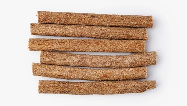 Лакомство приготовлено из говяжьего вымени с добавлением круп и клетчатки. При высушивании кусочки становятся хрустящими и сохраняют натуральный вкус. В составе только привычные ингредиенты без искусственных консервантов и ароматизаторов. В каждом кусочке — около 20 г белка, 18 г жиров и 10 г углеводов на 100 г продукта, что делает угощение питательным и сытным. Хрустящие деликатесы подойдут для дрессировки и как поощрение между приёмами пищи, помогая собаке оставаться активной и довольной.