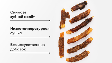 Сушёный батат с бараньим рубцом — это не просто вкусное угощение для собаки, но и полезный способ поддержать здоровье зубов. Низкотемпературная сушка позволяет сохранить все витамины и микроэлементы батата, а бараньи рубцы придают лакомству интересную текстуру. Такое сочетание помогает собаке не только насладиться вкусом, но и избавиться от зубного налёта. В составе нет искусственных добавок и консервантов, только натуральные ингредиенты: батат и рубец. Производство контролируют ветеринары, что гарантирует безопасность для питомца. Отлично подходит для дрессировки или просто как поощрение.