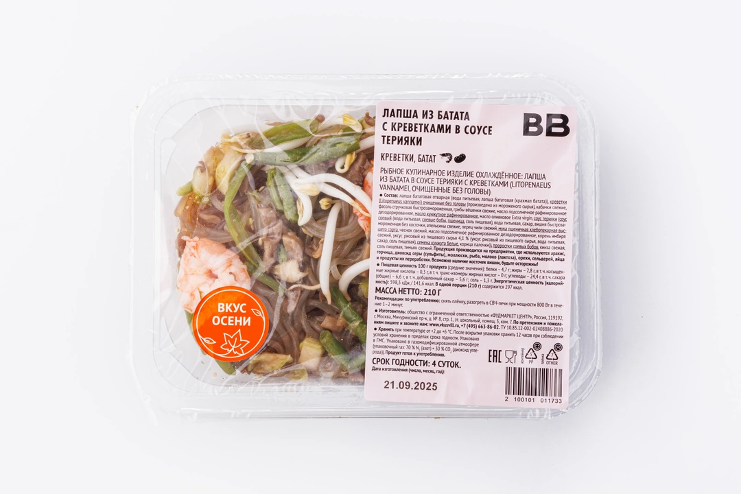 Стеклянная лапша из батата получается особенно нежной и слегка тягучей, а в сочетании с креветками она приобретает морской оттенок. Овощи добавляют блюду свежесть и лёгкий хруст, а грибы делают вкус насыщеннее. Соус терияки с нотами цитрусов и сладковато-острым акцентом подчёркивает самобытный азиатский характер. Перед подачей лапшу лучше разогреть в микроволновой печи. Её яркий аромат перенесёт вас на шумную улицу японского мегаполиса, где так много ресторанов традиционной кухни и можно попробовать классические рецепты со свежими морепродуктами.