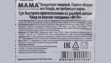 Лапша быстрого приготовления из Таиланда МАМА. Продукция готовится в городе Бангкоке из высококачественной рисовой муки, лапша готовится с добавлением национальных тайских приправ и пряностей, благодаря которым и приобретает свой насыщенный и неповторимый вкус. Страна производитель-Таиланд