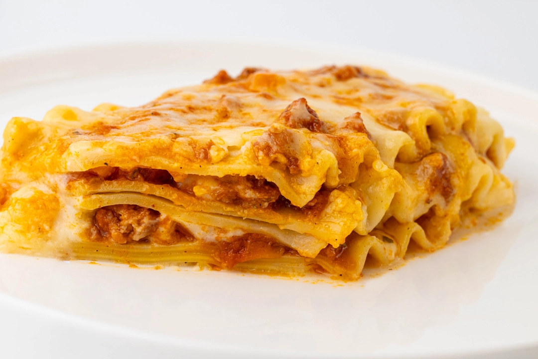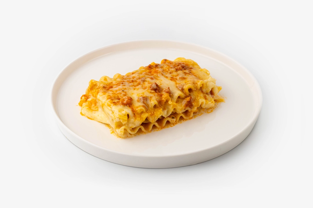 Сытное и ароматное слоёное блюдо со свино-говяжьим фаршем и соусом болоньезе. Тонкое тесто пропитано густой мясной заправкой с добавлением овощей и пряностей. Соус бешамель придаёт лазанье сливочные ноты, а моцарелла и пармезан — особенную нежность. Перед подачей на стол блюдо нужно разогреть, следуя инструкции на упаковке: сыр расплавится, а мясо станет более сочным. Это быстрый способ приготовить обед или ужин для всей семьи. Хорошо сочетается со свежим салатом.