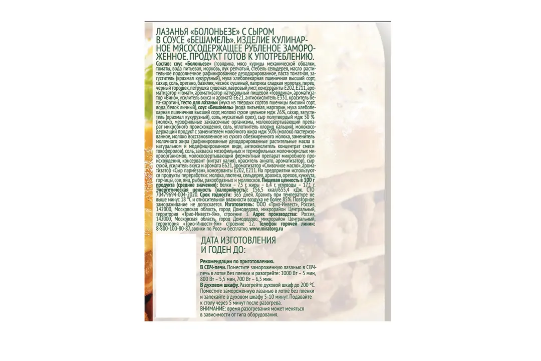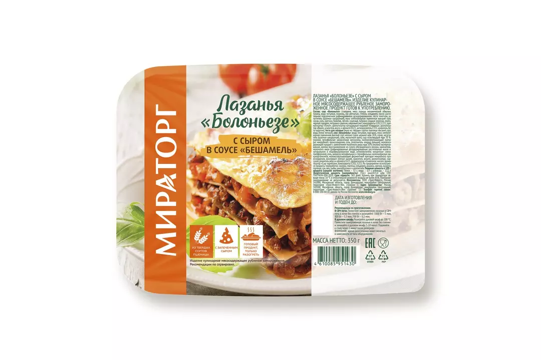 Лазанья Мираторг Болоньезе замороженная 350 г / Супермаркет