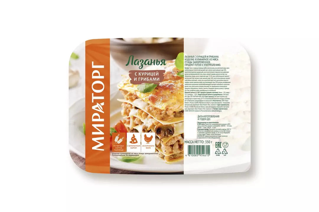 Лазанья Мираторг с курицей замороженная 350 г / Супермаркет