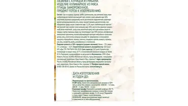 Наша лазанья — это классическая начинка из курицы с шампиньонами между слоями тонкого теста из твёрдых сортов пшеницы. Запекается во соусе Бешамель, приготовленному по эталонному французскому рецепту. Страна-производитель Россия