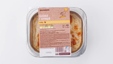 Листы пасты из твёрдых сортов пшеницы чередуются с куриным фаршем, приготовленным с томатной пастой, морковью и луком, а сливочный соус бешамель на молоке и сливочном масле добавляет нежности. Сверху — сулугуни, который даёт аппетитную румяную корочку и после разогрева становится тягучим. Добавили специи — орегано, кориандр и мускатный орех, чтобы придать блюду ароматную глубину. Вкус получается деликатным и уютным: сливочная основа, нежная курочка, лёгкая сладость овощей и немного пряностей. Разогрейте перед употреблением, и сыр немного расплавится, а ароматы начинки наполнят кухню.