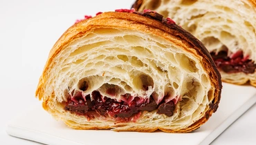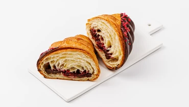 Французский круассан ручной работы с малиновой начинкой и шоколадной глазурью — вкусный вариант для сладкого завтрака. Слоёное тесто с маслянистыми нотами сочетается с кисло-сладким ягодным конфитюром. Шоколадный ганаш добавляет насыщенный вкус какао, не перебивая природный аромат малины. Сливочное масло в составе придаёт выпечке воздушность и нежность. Этот круассан нельзя назвать миниатюрным — он довольно большой, а благодаря индивидуальной упаковке его удобно взять с собой для сытного перекуса.