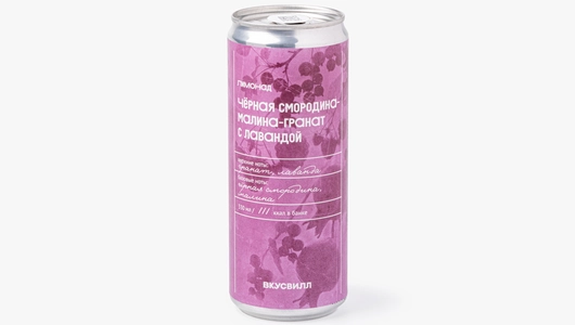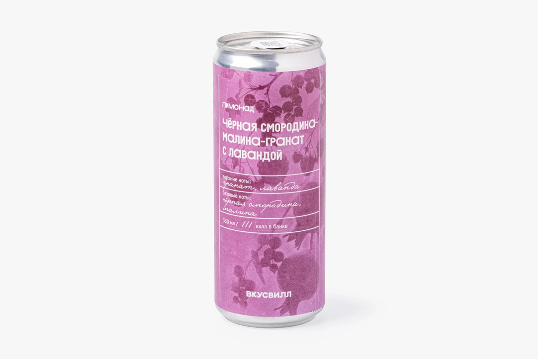 Освежающий лимонад с насыщенным ягодным вкусом и умеренной газацией. Он приготовлен на основе чуть терпких соков чёрной смородины и малины, а верхние ноты граната добавляют благородную кислинку с едва уловимым цветочным оттенком лаванды. Напиток отличается низкой калорийностью, в банке всего 111 ккал. Допускается образование естественного осадка. Слегка переверните банку, чтобы размешать лимонад, и аккуратно постучите пальцем по стенкам перед открыванием, сбивая пузырьки. Продукт не содержит консервантов и искусственных красителей