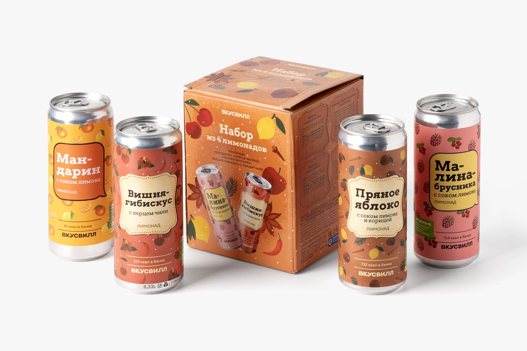 Набор из 4 лимонадов с насыщенными фруктовыми вкусами познакомит вас с нашими оригинальными продуктами, чтобы вы могли выбрать любимый вариант. Каждый напиток изготовлен на основе сока прямого отжима без искусственных ароматизаторов и консервантов, а средняя степень газации добавляет им яркий праздничный акцент. Это готовое решение для новогоднего подарка или угощения. Размешайте лимонад, слегка перевернув банку, и аккуратно постучите пальцем по стенкам перед открыванием, чтобы сбить пузырьки.