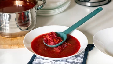 Удобная кухонная ложка длиной 28 см с нейлоновой основой и силиконовым покрытием, легко справляется с горячими блюдами, выдерживая температуру до 210 °C. Практичное отверстие на ручке позволяет повесить её на крючок. Мягкий силикон не царапает посуду, а гибкая конструкция удобна для перемешивания соусов, каш или тушеных овощей. Не впитывает запахи и легко моется.