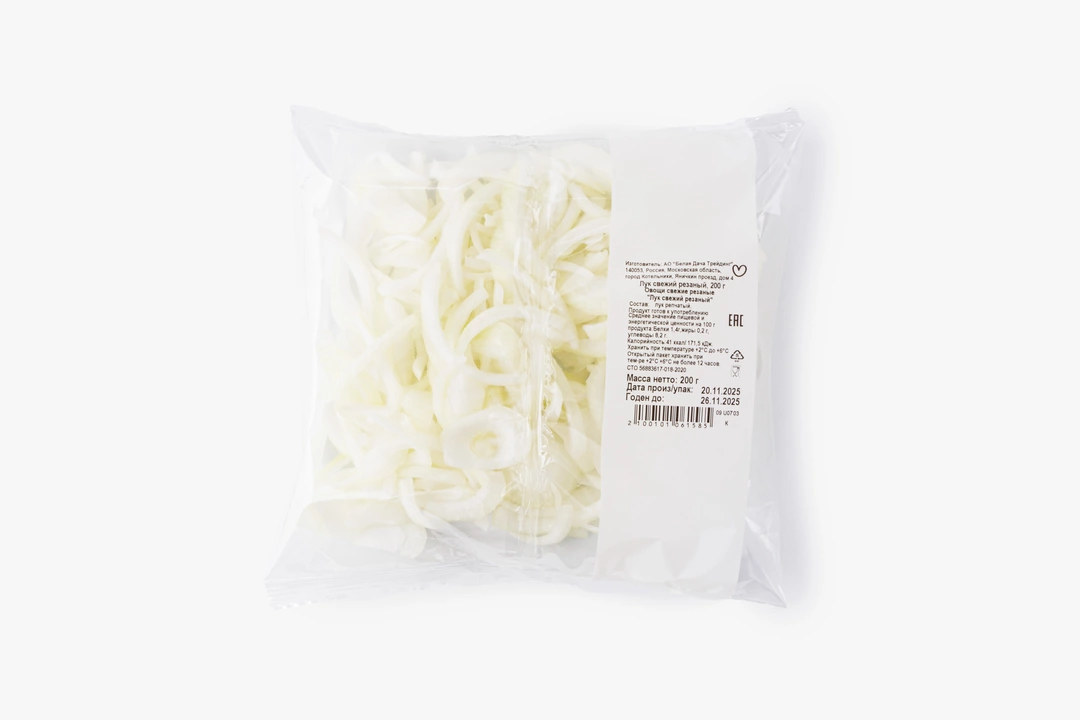 Нарезанный свежий лук готов к добавлению в блюда и не требует дополнительной обработки. Сохраняет характерный аромат и лёгкую остроту, но за счёт предварительной нарезки не раздражает глаза при приготовлении. Подходит для супов, салатов, маринадов, горячих блюд и экономит время — вам остаётся просто добавить его при готовке.