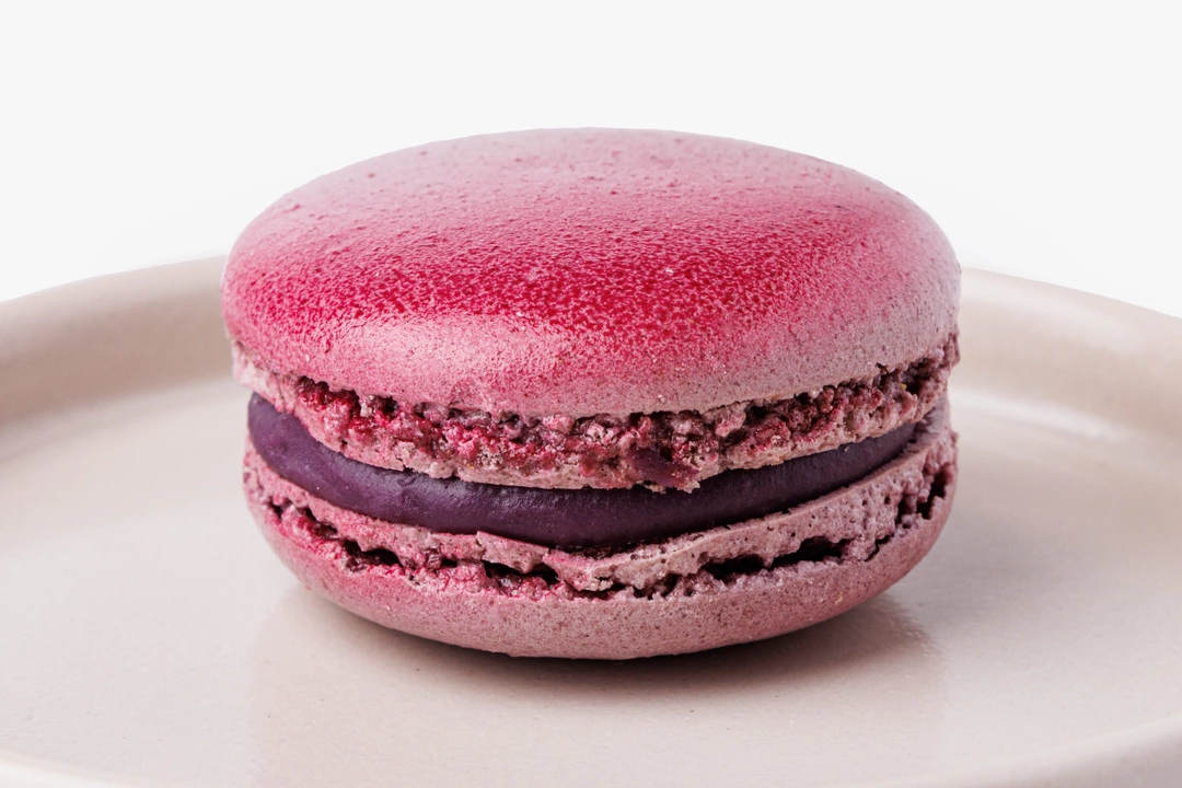 Традиционное французское миндальное пирожное с яркой ягодной начинкой. Между двумя воздушными печеньями йогуртовая начинка с ягодной нотой черники. Чуть терпкая, с лёгкой кислинкой, черника придаёт наполнителю выразительный цвет и вкус. Макароны можно подавать к чаю и кофе в качестве десерта или взять с собой для быстрого перекуса на прогулке или в офисе.