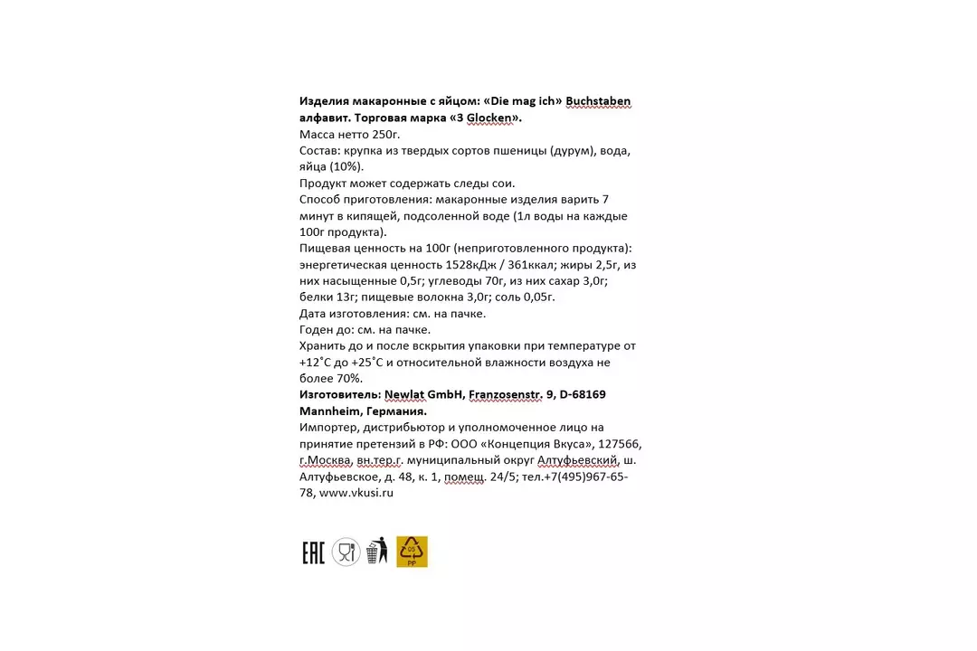 Макаронные изделия 3 Glocken Die Mag Ich Buchstaben алфавит 250 г / Супермаркет