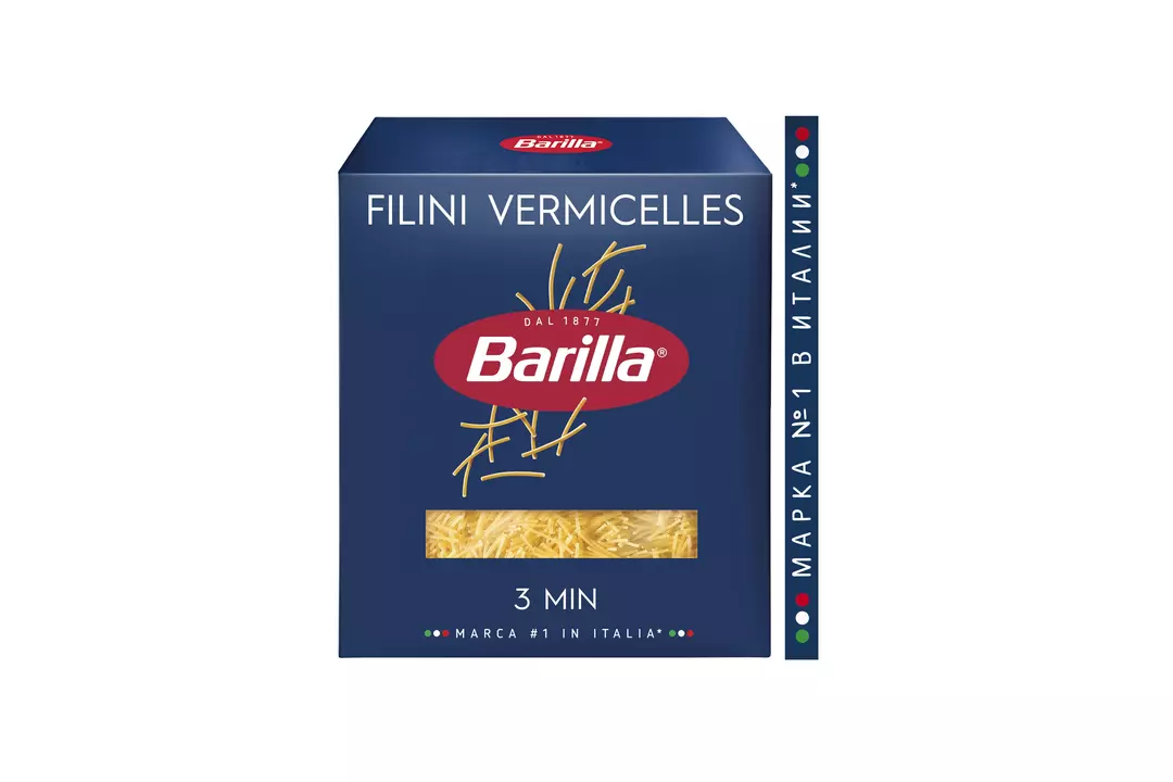Макароны Barilla Filini (Филини) № 30 – тонкая нитевидная паста, которая наилучшим образом смотрится в первых блюдах. Она отлично сочетается с мясным, куриным, рыбным бульоном и делает его более ароматным и сытным. В составе макарон «Филини» только два ингредиента: мука из твёрдых сортов пшеницы и вода, благодаря чему они не развариваются и не слипаются. Для приготовления пасты Barilla «Филини» понадобится всего 3 минуты, поэтому рекомендуется добавлять её в суп уже на финальном этапе. В процессе вермишель сохраняет форму и аппетитный вид. Время варки 3 минуты