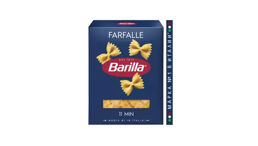 Barilla Farfalle (Фарфалле) № 65 – восхитительная паста, форма которой так популярна в Италии. Главная отличительная особенность – необычный внешний вид, за который эти макароны ещё называют бабочками или бантиками. Чуть более плотная серединка и тонкие края – интересная структура для кулинарных экспериментов. Традиционно макароны-бабочки подают с рыбой, морепродуктами и лёгкими овощными или масляными соусами, однако они также отлично сочетаются с мясом, птицей и грибами. Barilla «Фарфалле» № 65 производятся из муки твёрдых сортов пшеницы высшего качества и воды. До состояния аль денте они готовятся за 11 минут, не развариваются и не теряют форму. Время варки 11 минут