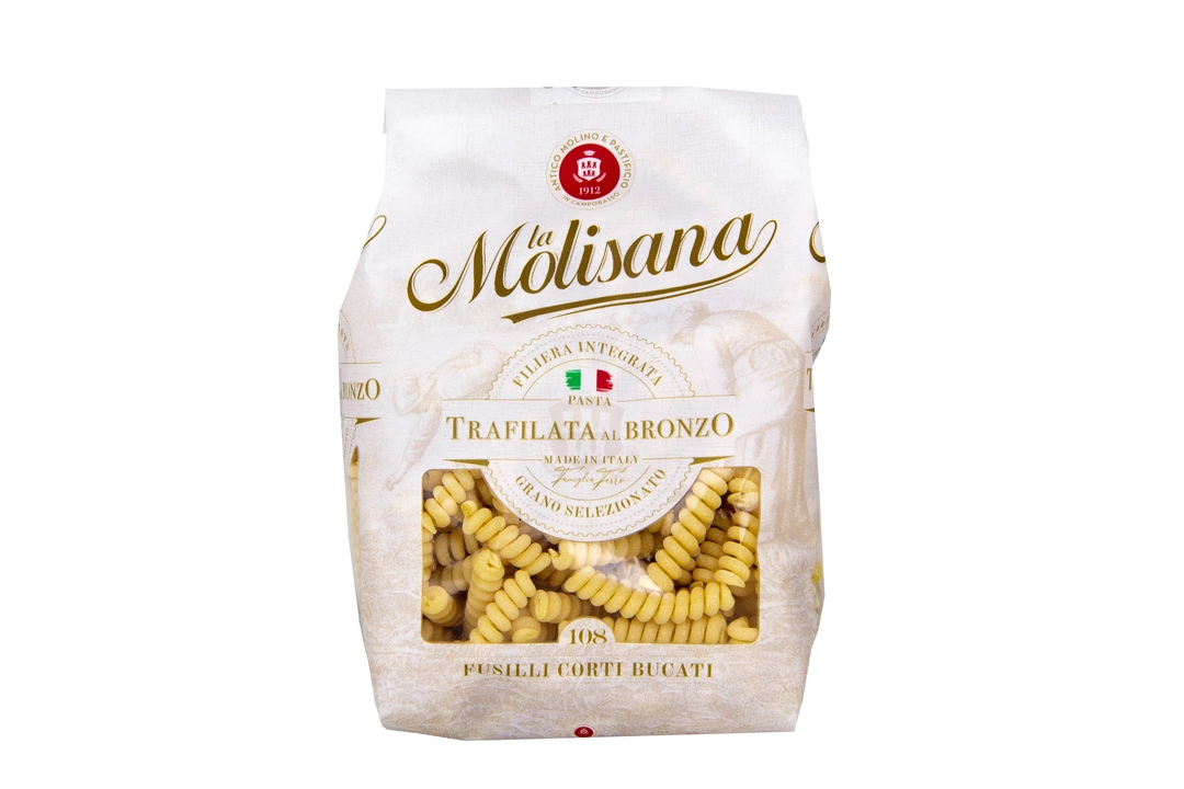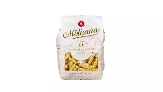 Макаронные изделия La Molisana Fusili Corti Bucati 500 г изготавливаются в южной части Италии по технологии Trafilatura al bronzo, т. е. с применением бронзовых форм, через которые продавливается тесто из пшеницы твердых сортов и чистейшей воды. Полые пружинки небольшой длины удерживают соус внутри, поэтому их часто сопровождают всевозможными подливами. Кроме того, эта паста с низким содержанием клейковины присутствует в рецептах некоторых супов и салатов. Продолжительность варки макарон-спиралек до готовности — 7 минут. Страна-производитель Италия