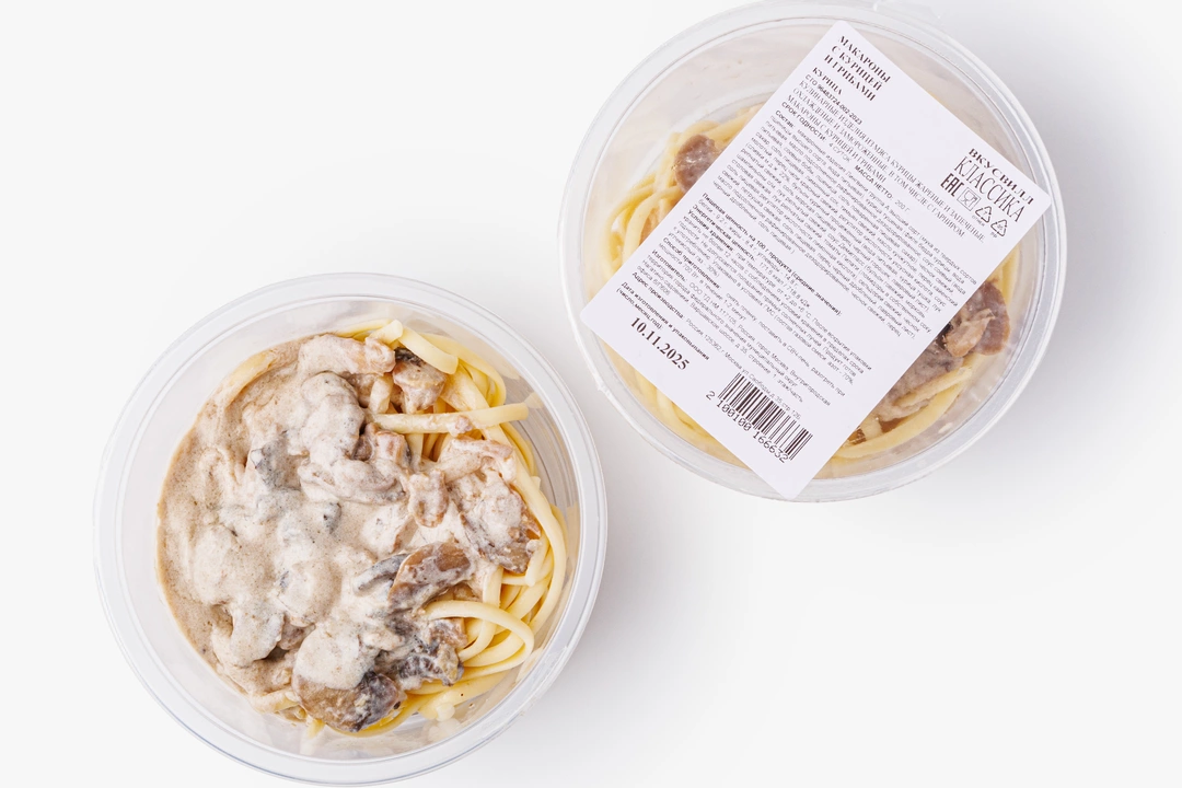 Макароны с кусочками куриных бёдрышек и обжаренными шампиньонами. Паста приправлена свежими травами, которые придают блюду выразительные пряные ноты. А соус на сливках делает вкус макарон нежным и сбалансированным.