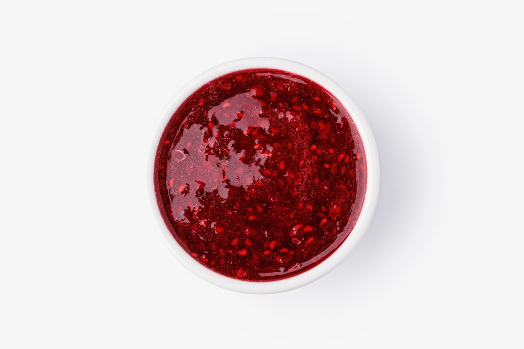 Свежемороженная малина, протертая с сахаром. Вкусный и полезный перекус или даже легкий десерт. Малина обладает жаропонижающим и противовоспалительным эффектом, богата железом, медью и витаминами А, Е, РР, В2.
