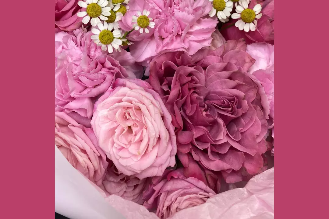 Малиновый закат. Пионовидные розы кустовые розы ромашки FMART by flowwow