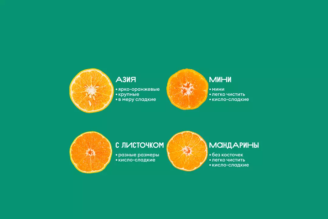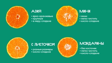 Душистые мандарины с кокетливым зелёным листочком. Украсят фруктовую тарелку и порадуют освежающим вкусом с кислинкой. Плоды разного размера, часто с косточками, плотная шкурка счищается довольно просто.
