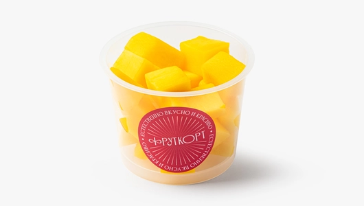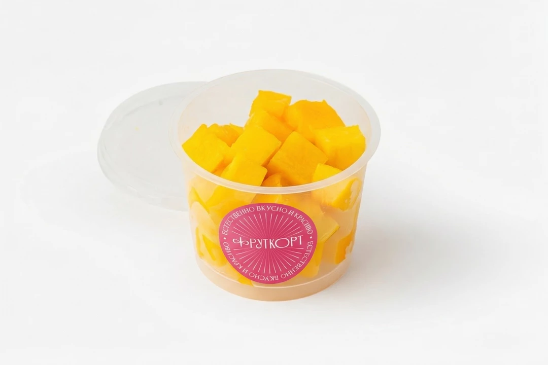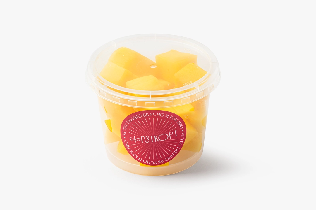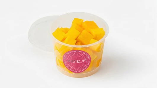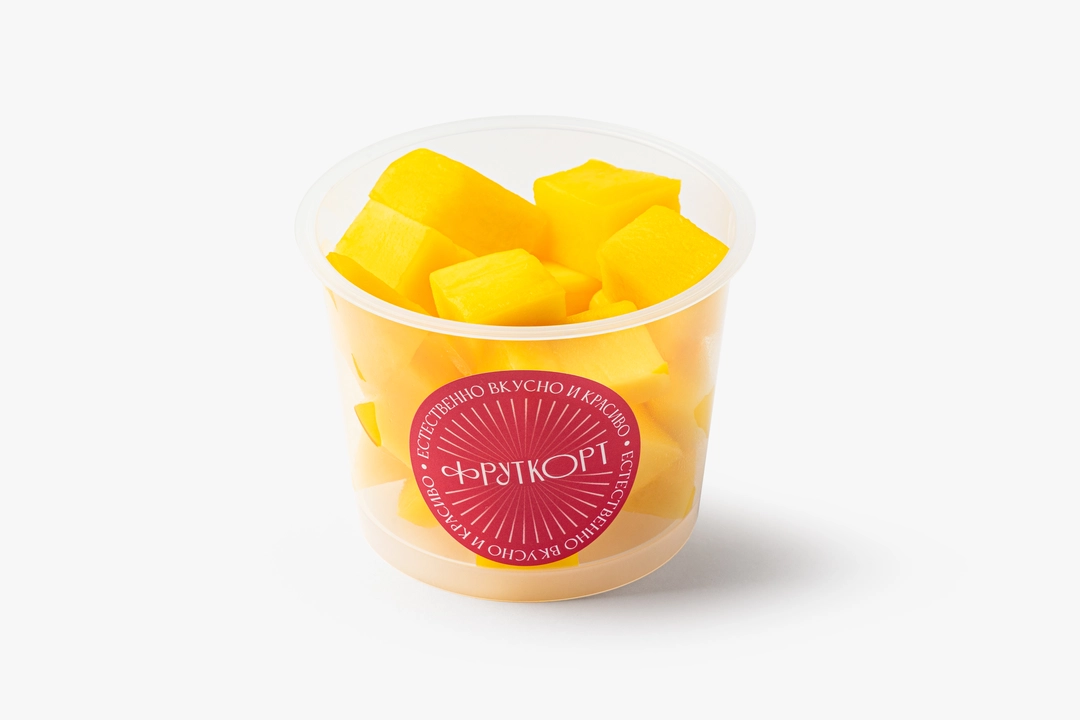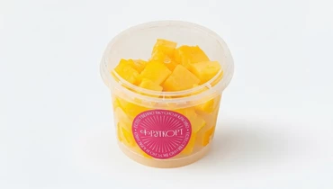 Спелое манго, нарезанное сегодня. Используем ароматные плоды и обновляем нарезку утром, днём и вечером — всегда свежее и сладкое. Готово к употреблению, только мякоть. Фруткорт — это наша собственная кухня, где мы сами готовим свежие нарезки и напитки в течение дня. Больше информации и другие позиции можно найти в каталоге по слову «фруткорт».