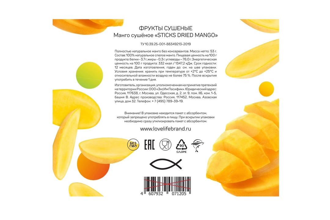Манго сушеное Люблю Жизнь 53 г / Супермаркет