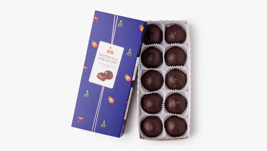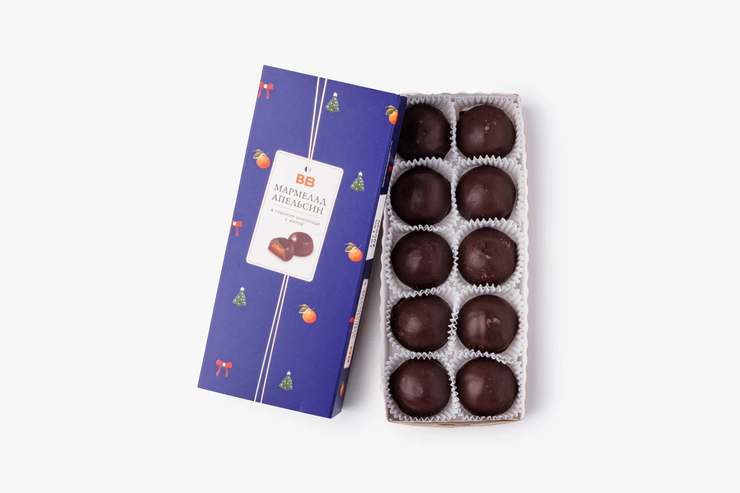 Мягкие конфеты с натуральным апельсиновым желе, облицованные горьким шоколадом. Во вкусе — идеальная гармония сочных цитрусовых нот, холодка перечной мяты и шоколада. Кстати, эта стильная коробочка не только украсит стол, но и станет отличным подарком для дорогого человека.