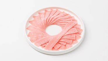 Кислая сахарная корочка этого упругого мармелада с насыщенным вкусом клубники и лёгкими яблочными нотами бодрит с первого укуса. Жевательная текстура плотная, но не жёсткая, с приятной фруктовой сладостью на фоне освежающей кислинки. Без желатина — подойдёт для тех, кто придерживается растительного рациона.