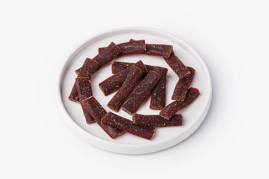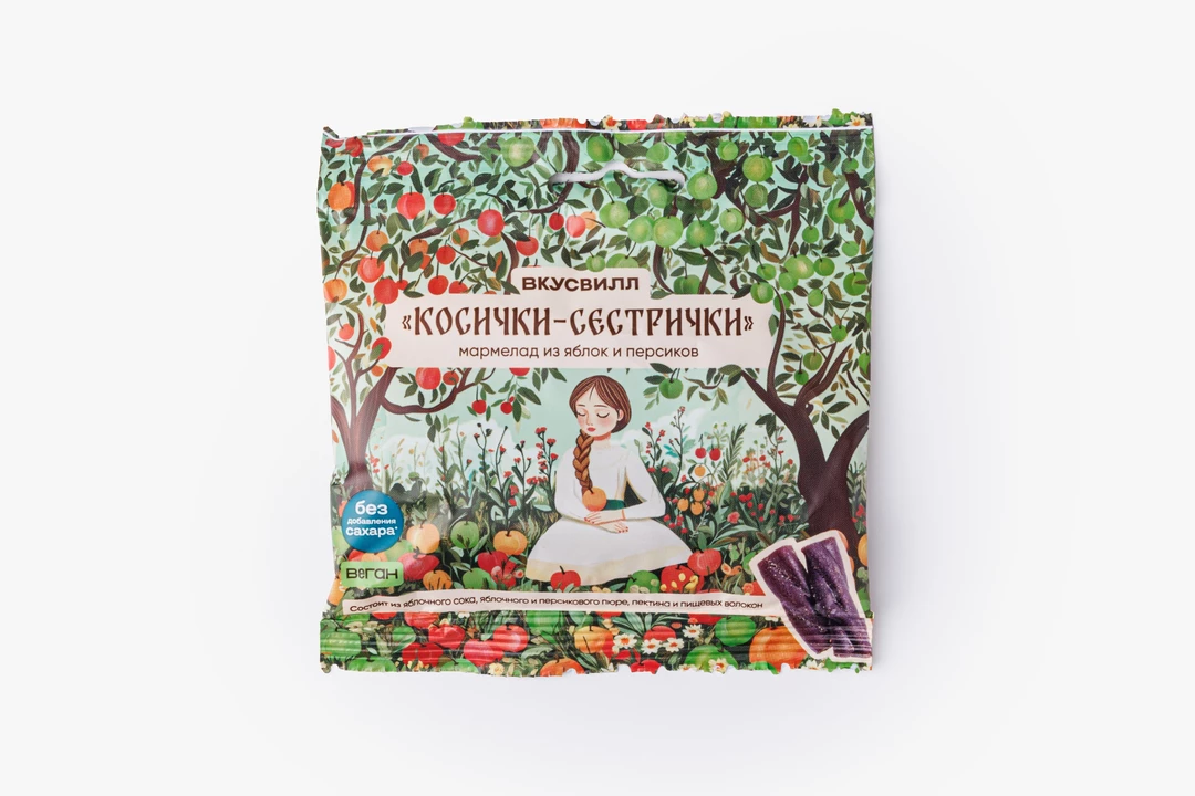 Фруктовое лакомство с ярким яблочно-персиковым вкусом. Приготовлено из сока и пюре без добавления сахара. Мармелад упругий и мягкий, его удобно взять с собой в дорогу или на прогулку. Косички хороши как десерт к чашке чая после основного блюда или лёгкий перекус в середине дня. Благодаря растительной основе мармелад оценят приверженцы веганского рациона и те, кто ищет натуральные сладости.