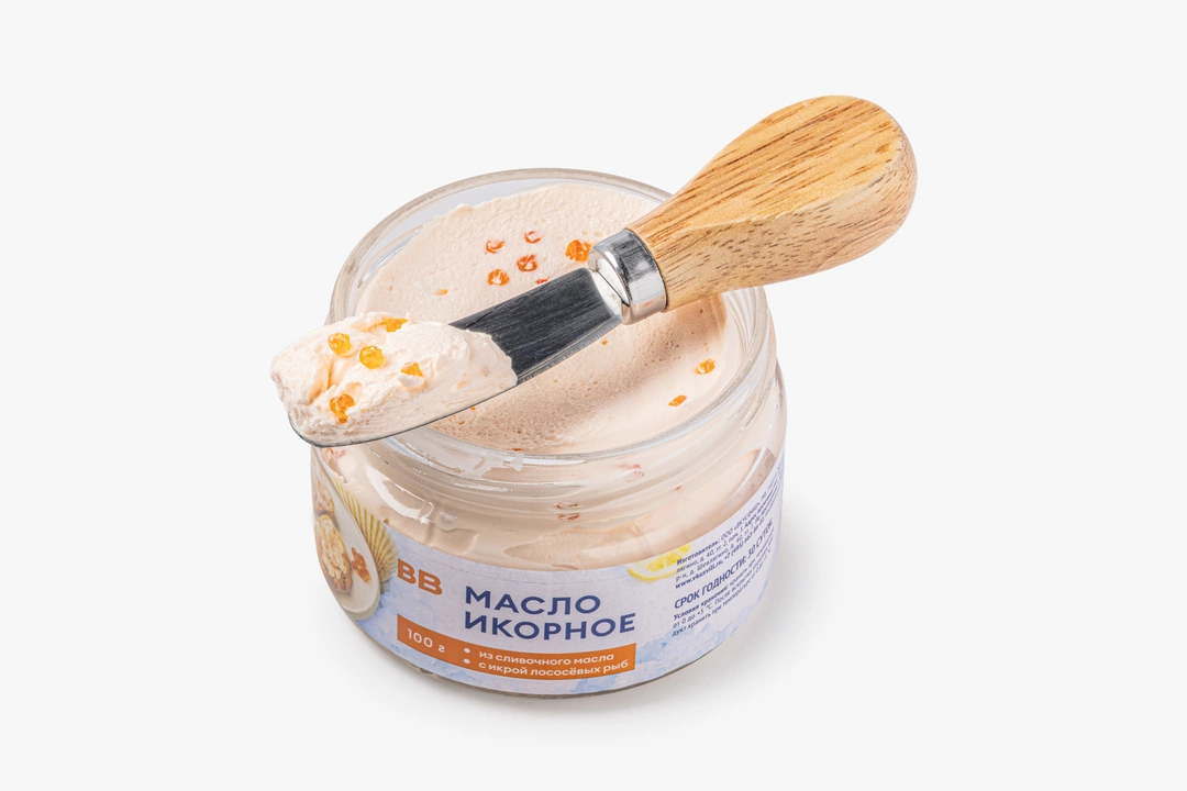 Натуральное сливочное масло с добавлением лососевой икры. Просто намажьте икорным маслом свежий багет или используйте его в качестве наполнения для тарталеток и вкусная закуска готова!