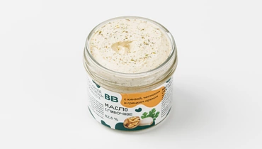 Масло с пикантными нотами пряностей и ореховым оттенком. Благодаря классической жирности 82,5% сливочная основа получается особенно нежной. Сушёная кинза добавляет травянистую свежесть, которая гармонично сочетается с глубоким ароматом чеснока. Обжаренные ядра грецких орехов придают интересную текстуру и лёгкую терпкость и сладость. Хороший вариант для бутербродов на тёплом хлебе или гренках. Может стать оригинальным ингредиентом для соусов к мясу или пасте. Подойдёт тем, кто любит экспериментировать с привычными продуктами.