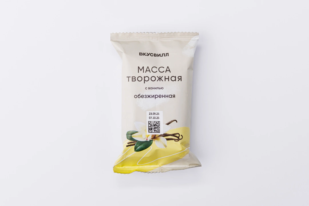 Лёгкая творожная масса с мягким вкусом и нежным ароматом ванили. Обезжиренный творог делает её менее калорийной, но сохраняет характерную кислинку и плотную текстуру. Мы добавили небольшое количество сахара и экстракт ванили, чтобы подчеркнуть десертный характер продукта. В творог можно положить горсть свежих ягод, кусочки фруктов или ядра орехов, а можно использовать массу как начинку для блинов.