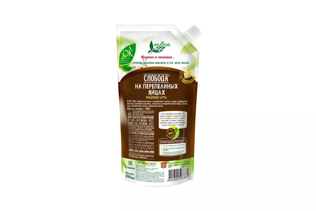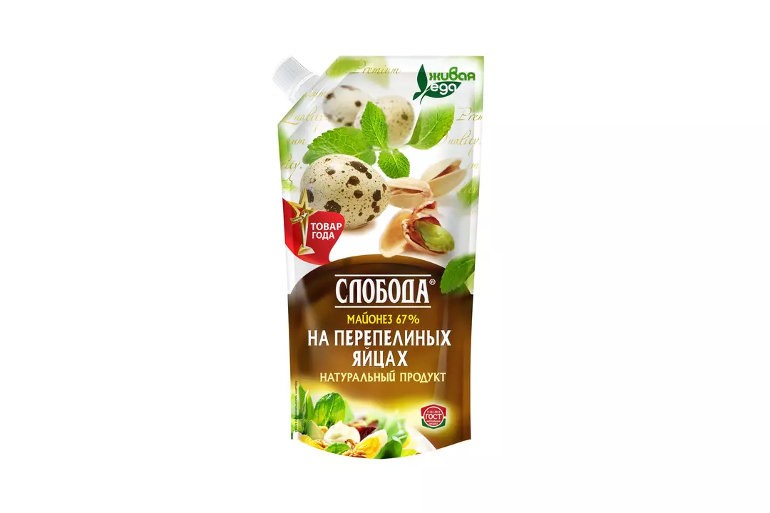 Слобода На Перепелиных Яйцах — классический майонез, дополненный пользой перепелиных яиц. В состав майонеза входят только натуральные ингредиенты, а свежие яичные желтки в рецептуре делают Слободу такой уникальной и неповторимой. Майонез на перепелиных яйцах обладает идеально сбалансированным вкусом и станет отличным дополнением к вашим любимым блюдам. Используйте его в качестве заправки для салата, маринада для рыбы и мяса, добавляйте в любимые бутерброды. Слобода объединяет вкус и пользу в одном продукте! Слобода — бренд, который знают и любят многие россияне уже на протяжении 30 лет. Все продукты «Слобода» отличаются настоящим вкусом и неизменным высоким качеством. Они не просто соответствуют ГОСТу, а обладают настоящей силой природы и производятся с заботой о будущем! Страна производитель-Россия