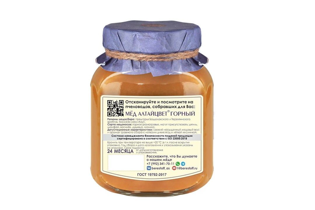 Мед Берестов А.С. цветочный Алтайцвет Горный 500 г / Супермаркет