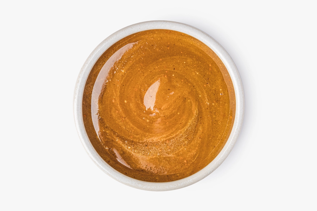 Медовый десерт с ярким пряно-цитрусовым характером. Гречишный мёд даёт насыщенную основу с лёгкой терпкостью, лимон добавляет свежую кислинку, а куркума и имбирь — тёплый, согревающий акцент. Консистенция густая и однородная, со специями, равномерно распределёнными в мёде. Такой десерт удобно добавлять в тёплую воду или чай, намазывать на тосты и сырники или использовать как ароматную добавку к кашам и йогуртам.