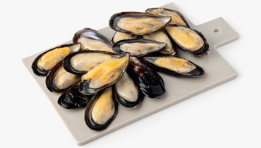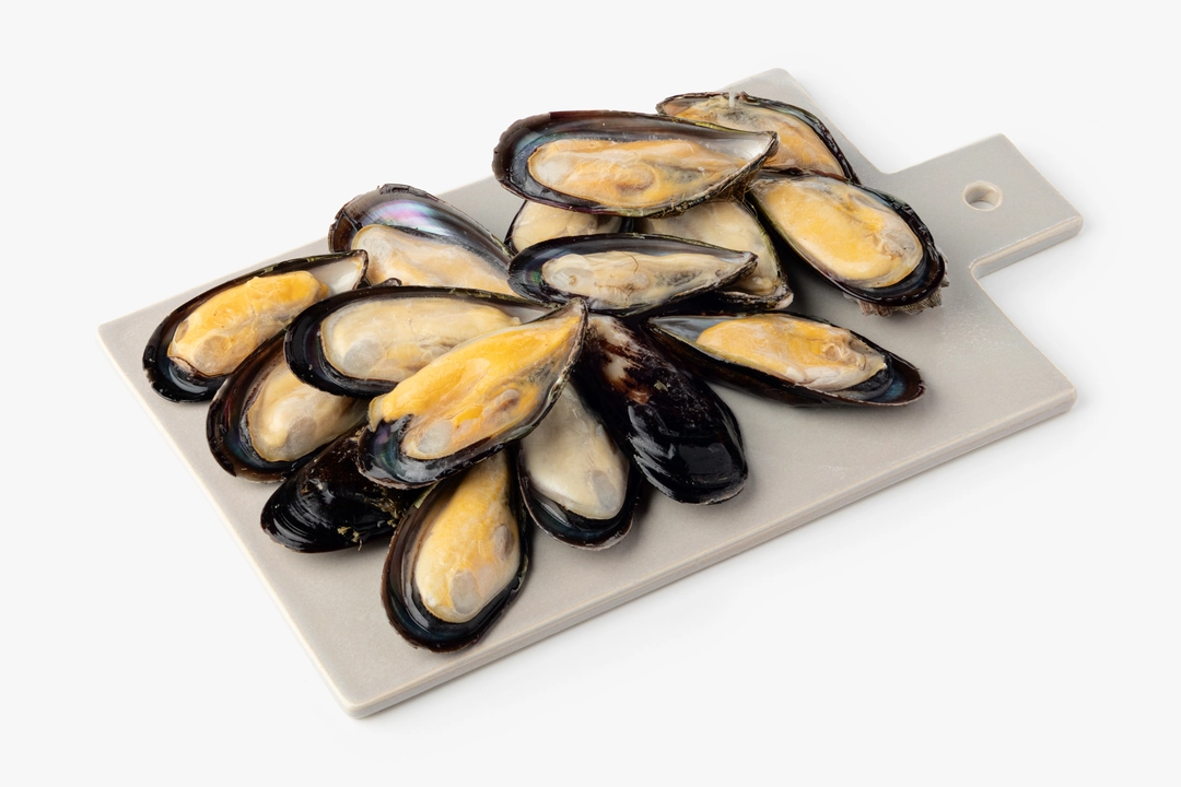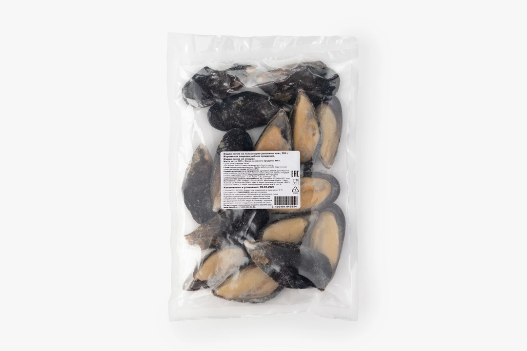 Сочные мидии на полустворке для быстрых и эффектных блюд. Своё название получили за оттенок раковины, который обусловлен питанием голубыми водорослями. Перед употреблением обязательна термическая обработка. Достаточно разморозить в холодильнике в течение 4–6 часов и затем прогреть. Чтобы раскрыть их вкус, попробуйте запечь мидии под сырно-чесночным соусом. Выловлены в северо-западной части Тихого океана. Защитная ледяная глазурь составляет не более 8%.