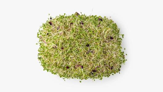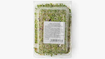 Ассорти сочной весенней зелени в оригинальном формате «батона». Блюда с ним станут не только полезнее, но и эстетичнее, ведь зелень можно нарезать аккуратными кружочками и использовать для подачи салатов, закусок и даже приготовления бутербродов и бургеров. А благодаря удобной компактной упаковке микс можно взять с собой для обеда вне дома или поездки на природу. В составе — проростки люцерны, клевера, кольраби, брокколи, редиса, фенугрека. Храните микс при температуре от +4 до +6ºС.