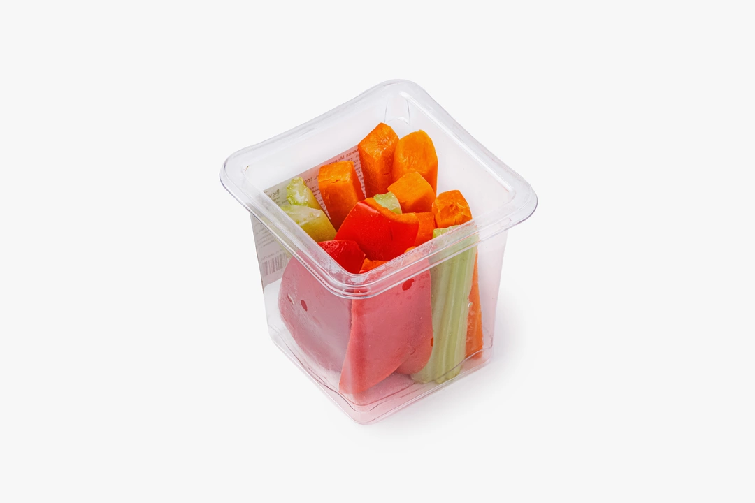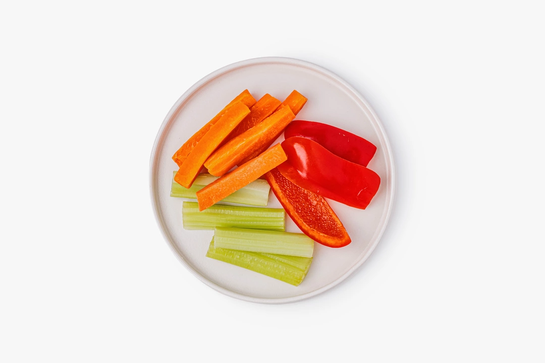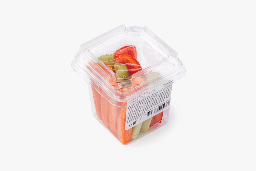 Свежий овощной микс с хрустящей морковью, сочным сельдереем и сладким перцем. Овощи уже вымыты и нарезаны аккуратными брусками, поэтому их удобно есть сразу. Подходит для лёгкого перекуса, овощной тарелки с соусами или как свежее дополнение к обеду.