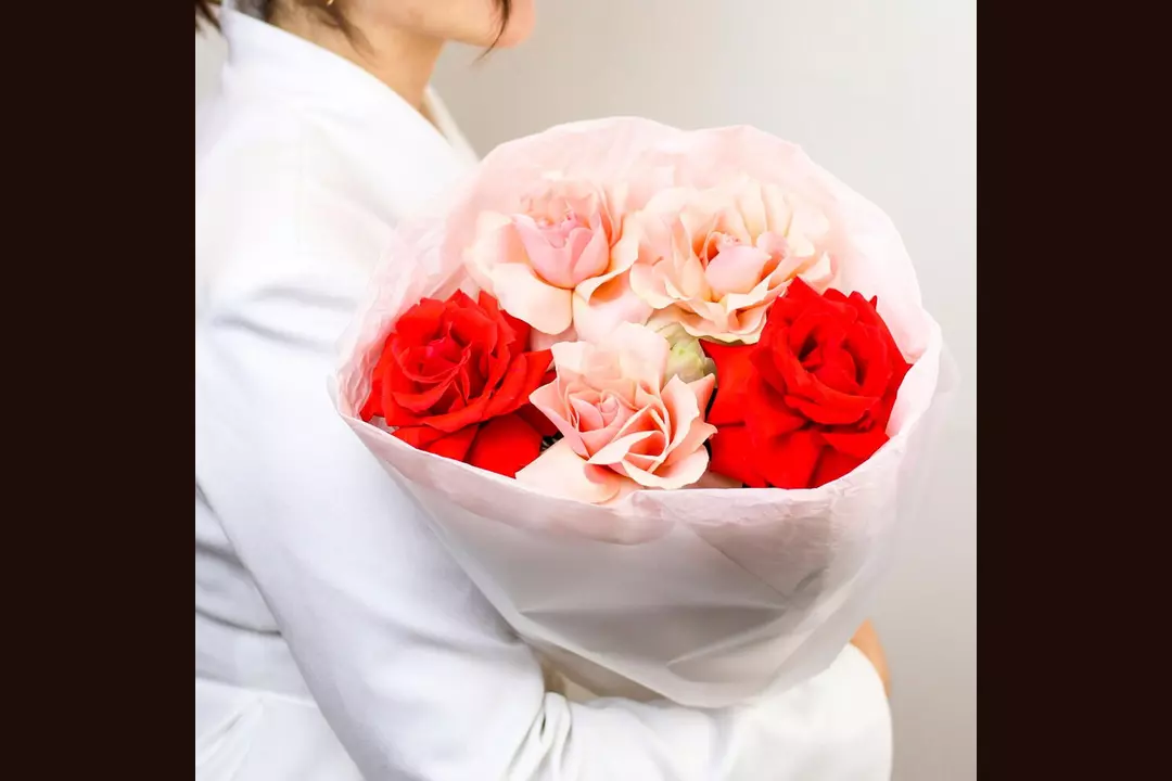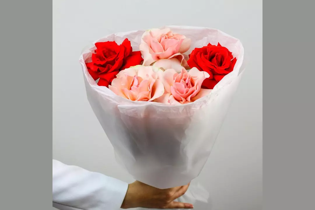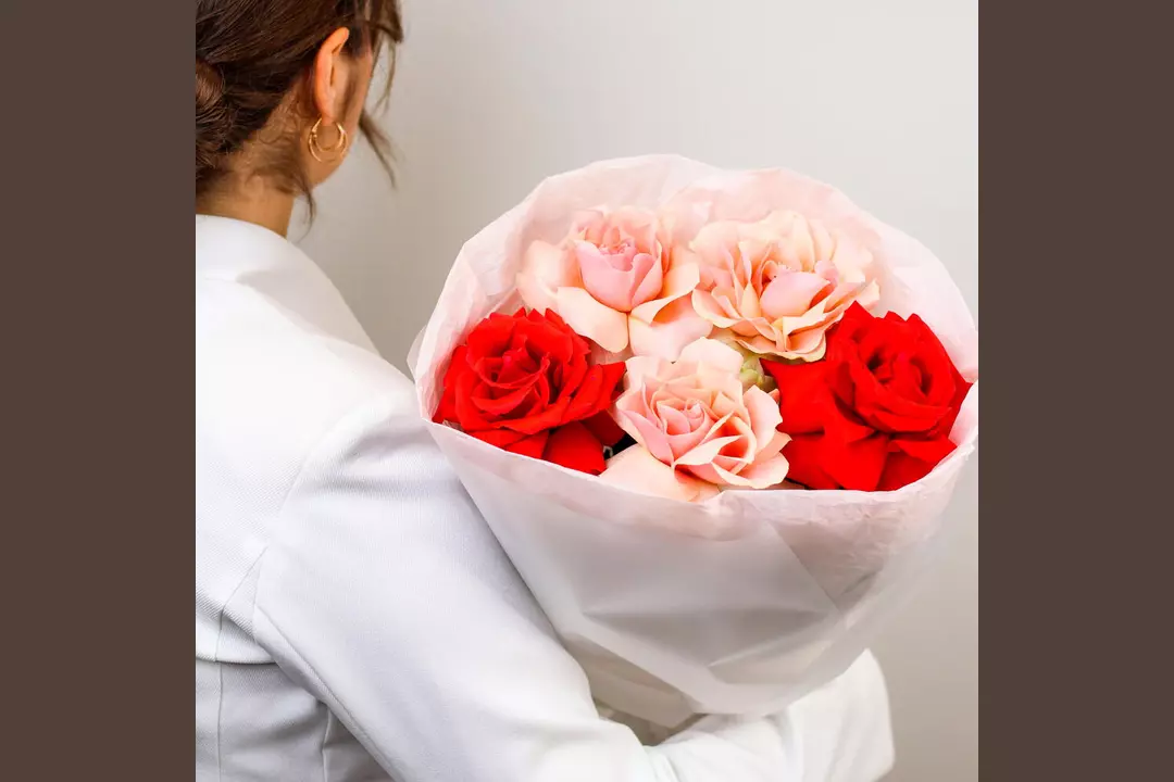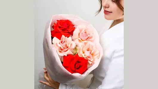 Любимая многими цветочная классика в оригинальном авторском исполнении подарит приятные эмоции и добавит свежести в любой интерьер. 🌷 Чтобы цветы радовали как можно дольше 🌷: * Обновите срез секатором или острым ножом на 1 см под углом 45 градусов. * Поставьте цветы в отстоянную воду комнатной температуры. * Меняйте воду каждый день и обновляйте срез раз в 1–2 дня. * Убирайте нижние листья, чтобы они не касались воды. * Срезайте увядшие бутоны. * Держите цветы подальше от фруктов, сквозняков, прямых солнечных лучей, источников тепла (батареи, настольные лампы, кипящий чайник). Состав Лента атласная - 1 шт. Упаковка дизайнерская - 1 шт. Роза французская - 5 шт.