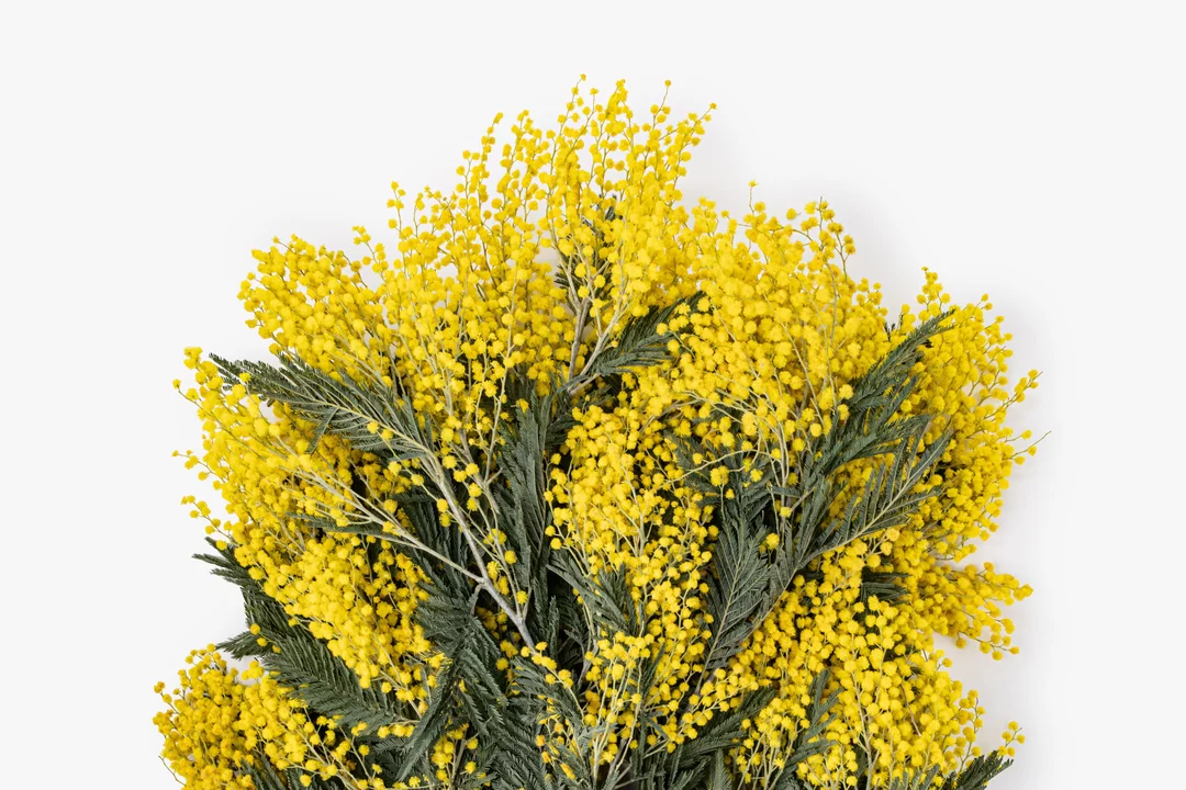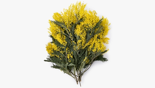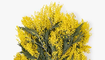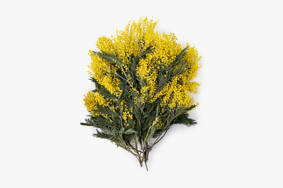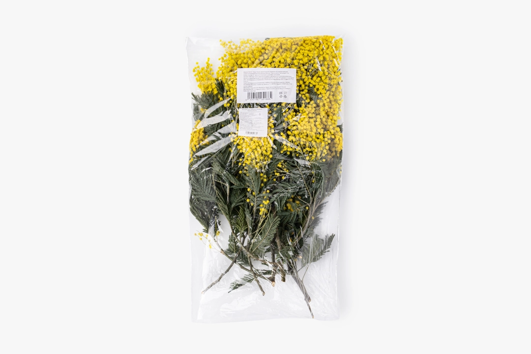Солнечный букет с жизнерадостным ароматом. Отличный способ порадовать близких и создать дома весеннее настроение. Букет составлен из 4-5 крупных веточек, могут быть добавлены несколько маленьких. Хрупкой мимозе свойственно незначительно осыпаться. Чтобы сохранить всю красоту цветов, флористы советуют не разворачивать букет сразу — дайте ему привыкнуть к микроклимату вашей квартиры. К тому же мимоза будет дольше радовать свежестью, если поставить её в сухую вазу и лишь опрыскивать водой. Со временем соцветия уменьшаются в объёме и подсыхают, но не спешите с ними расставаться — из мимозы получается красивый сухоцвет.