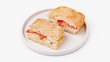 Мини-чиабатта с курицей, моцареллой и соусом острый Чили, кафе