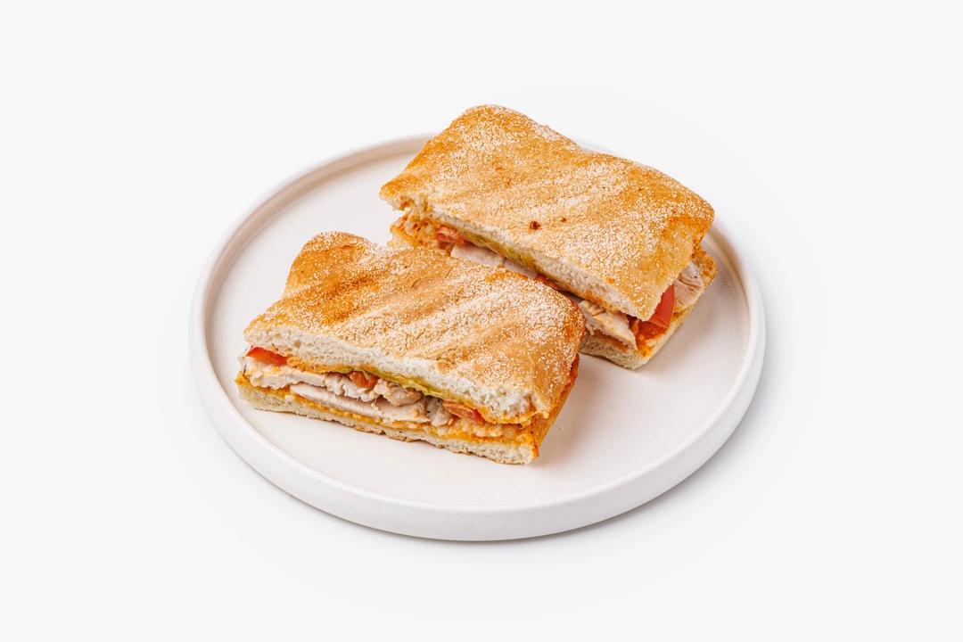 Мини-чиабатта с курицей, пармезаном и соусом копченый Айоли, кафе