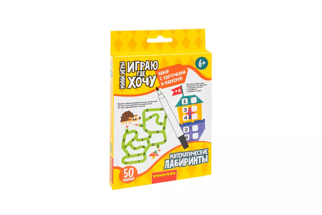 Математика? Легко и без стресса! Мини-игра МАТЕМАТИЧЕСКИЕ ЛАБИРИНТЫ серии ИГРАЮ ГДЕ ХОЧУ от Bondibon — это необычный тренажёр для обучения арифметике и забавной игры. В компактной коробке 50 забавных задачек, где нужно выполнять арифметические примеры на сложение и вычитание, сравнение чисел, числовые последовательности и определение четных и нечетных чисел. Ламинированные карточки подходят для многоразового использования — достаточно стереть маркер и решить задачу снова. Настольную игру с набором карточек легко взять в дорогу, в машину, на природу или в гости, она отвлечет от гаджетов и разовьет IQ, память и логику. Развивающая мини игра в дорожном формате МАТЕМАТИЧЕСКИЕ ЛАБИРИНТЫ серии ИГРАЮ ГДЕ ХОЧУ от Бондибон подойдет для девочек и мальчиков как полезный подарок на день рождения и новый год, или будущему первокласснику на выпускной в детском саду. Игра изготовлена из качественных безопасных материалов. В наборе 25 двусторонних карт с заданиями, маркер, салфетка. Возраст 6+ Страна производитель-Китай